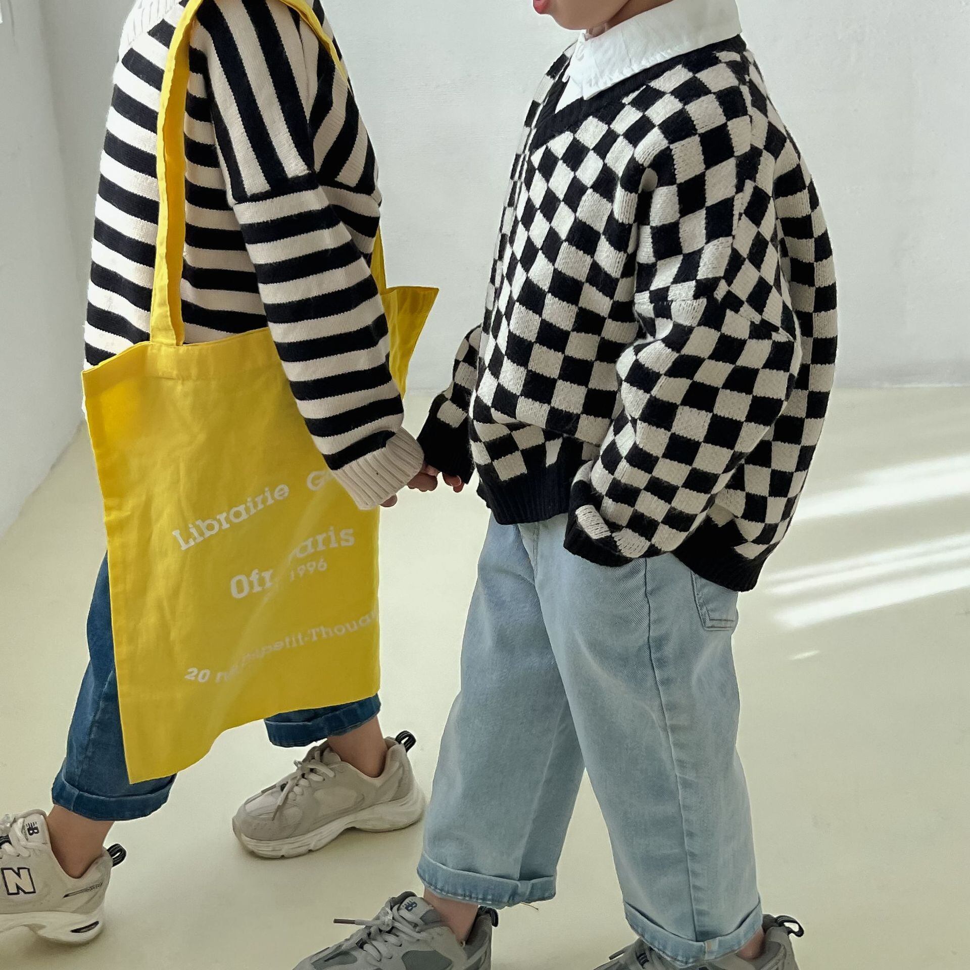 トップスは柄物、無地のTシャツや長袖で