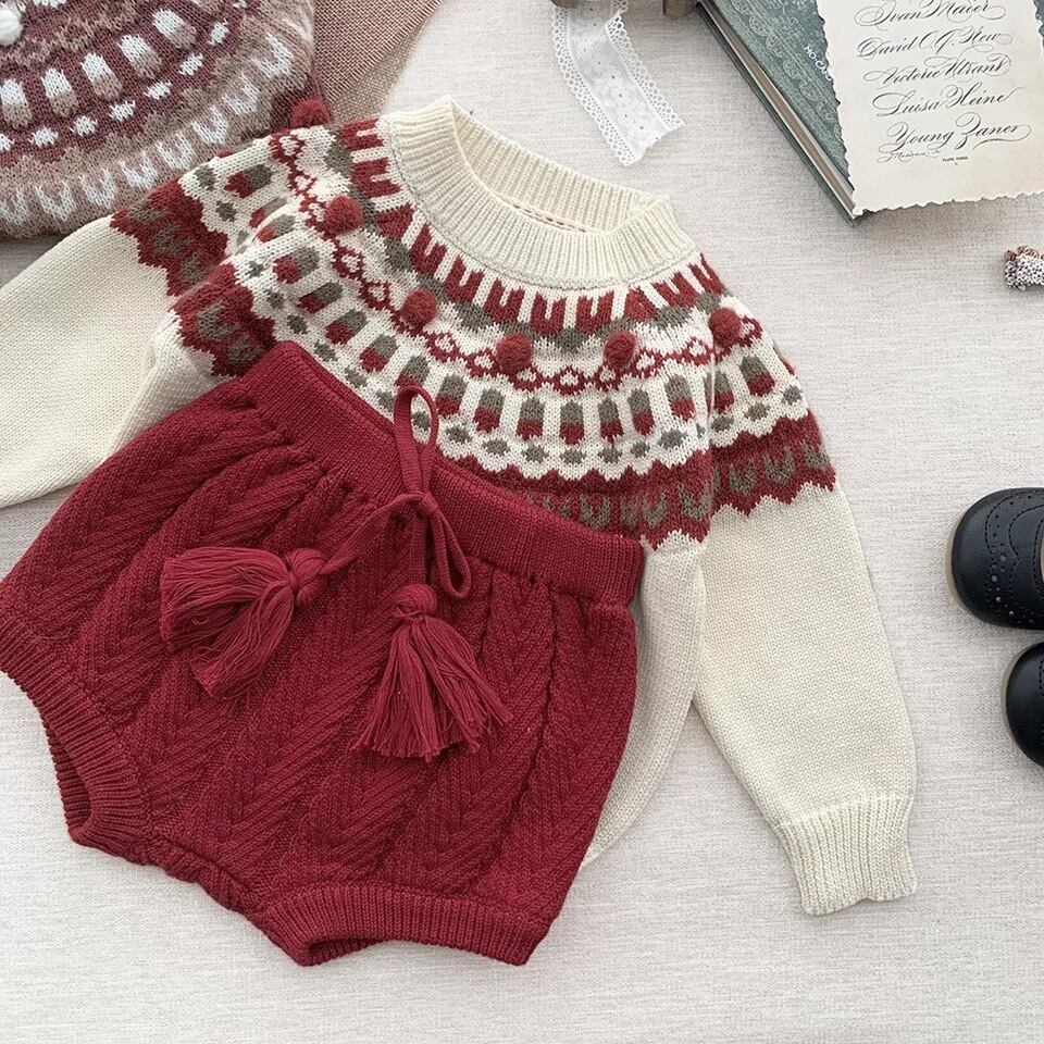 アーガイル柄にポンポン付きが