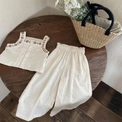 フェミニンでおしゃれなデザインです。 人気の刺繍入りキャミソールに、ワイドパンツが一体になったセットアップが登場しました!